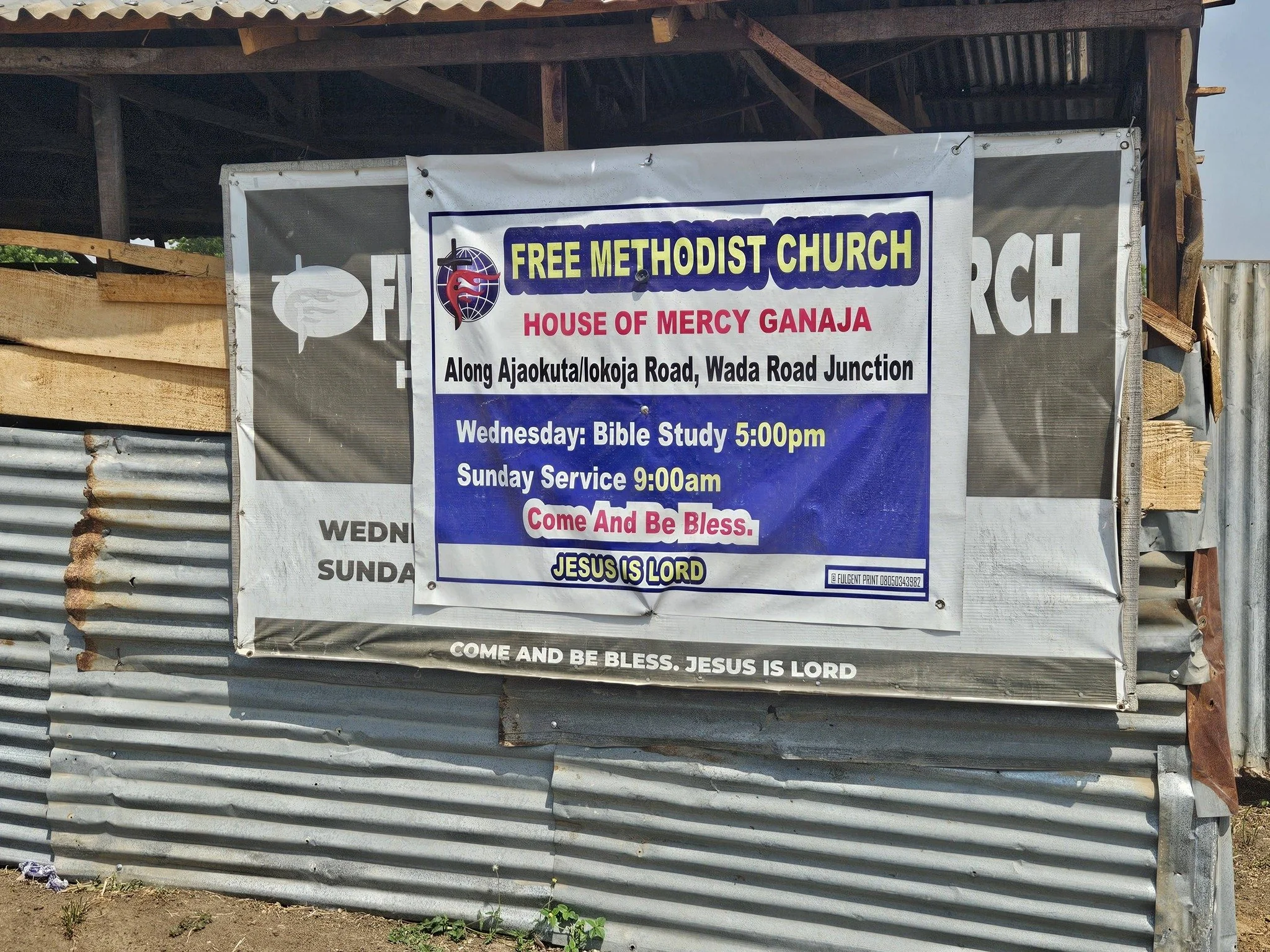 From Phyllis: We worshipped today at this new Free Methodist Church in Lokoja, Kogi State. SFA Assistant Director Reverend John Raji oversees six churches in Kogi State, of which this is the latest! The land and building belong to the Free Methodist Church, but as you can see, the money wasn't there to build a proper structure. I wonder if we couldn't raise enough to help!?