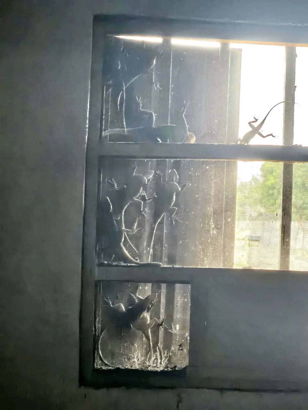 Phyllis - A lizard sleepover on the OUTSIDE of my window screen! (Thank goodness!) I count at least ten! Lizards are welcome INSIDE the house, actually, as they feast on mosquitoes, flies and other such pests!